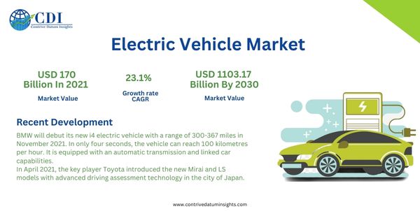 Electric Vehicle Market Is Expected To Reach around USD 1103.17 Billion By 2030, Grow at a CAGR Of 23.1% during Forecast Period 2023 To 2030 | Data By Contrive Datum Insights Pvt Ltd.