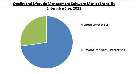 By Enterprise size, the quality and life management software market is classified into small and medium-sized enterprises and large enterprises. The SMEs segment garnered a significant revenue share in the quality and lifecycle management software market in 2021. This segment's rise can be due to the demand for cost-effective, straightforward quality & lifecycle management solutions. The continued development of new capabilities to QMS results from the software's adaptability and versatility, which drive demand among significant enterprises. Globally, organizations use various technologies and systems to generate huge quantities of data.