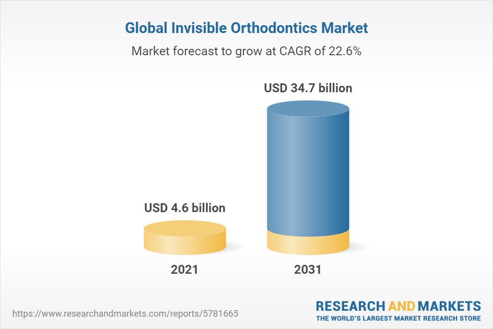 The global invisible orthodontics market was valued at $4.6 billion in 2021, and is projected to reach $34.7 billion by 2031, growing at a CAGR of 22.6% from 2022 to 2031.