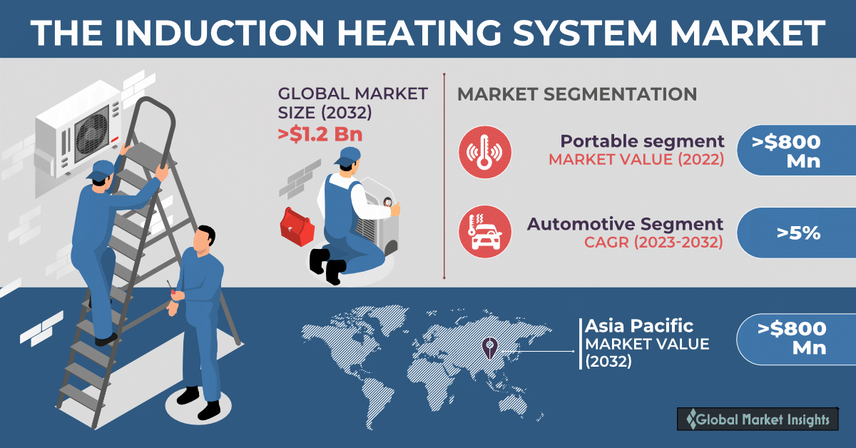 Induction heating systems market from the portable segment garnered over USD 800 million in 2022. Portable induction heating systems find widespread usage in a variety of industrial applications for executing several operations. These systems offer a number of advantages over their traditional counterparts, including reduced operational & capital costs, low maintenance, and less power usage, which is likely to favor product demand by 2032.