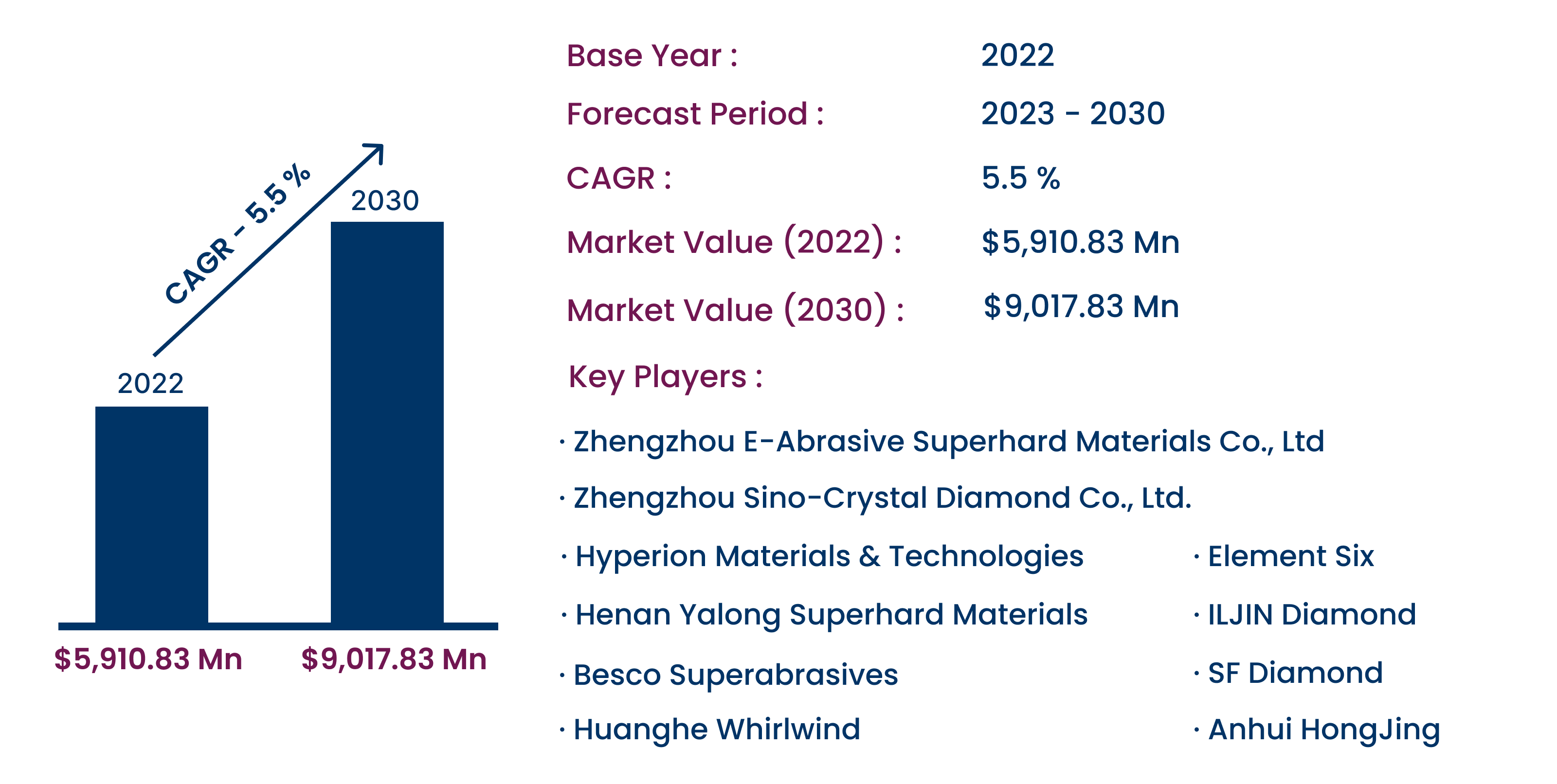 According to a recent report by Consegic Business Intelligence, the super hard materials market is poised for strong expansion and is expected to reach USD 9,017.83 Million by 2030. The market, which was valued at USD 5,910.83 Million in 2022, is predicted to grow at a compound annual growth rate of 5.5% during the period 2023-2030. The report highlights the increasing adoption of super hard materials in the building and construction industry, which is proliferating global market growth. Consegic Business Intelligence study also provides insights into the market's competitive landscape, market segmentation, regional outlook, and emerging technologies in the Super Hard Materials market.