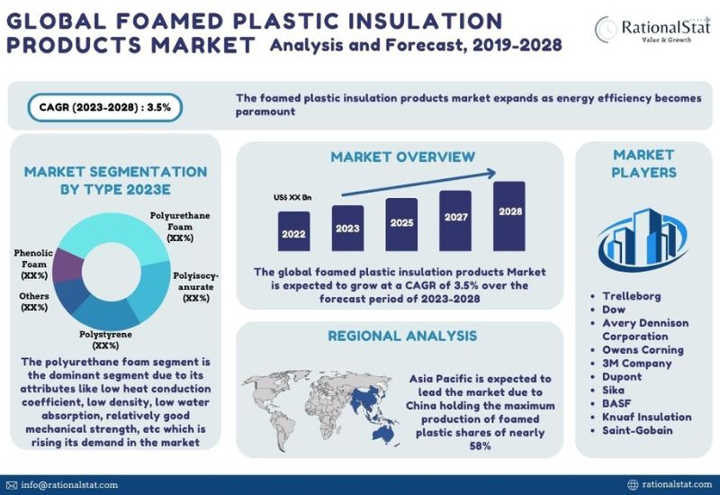 Wilmington, Delaware, Aug. 18, 2023 (GLOBE NEWSWIRE) -- Global Foamed Plastic Insulation Products Market is valued at US$ 25 billion in 2022 and is expected to grow at a significant CAGR of over 3.5% over the forecast period of 2019-2028, market report by RationalStat