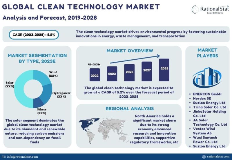 According to a deep-dive market assessment by RationalStat, the global clean technology market has been analyzed on the basis of market segments, including type, and geography/regions (incl. North America, Latin America, Western Europe, Eastern Europe, Middle East & Africa, and Asia Pacific). The report also offers global and regional market sizing for the historical period of 2019-2022 and the forecast period of 2019-2028.