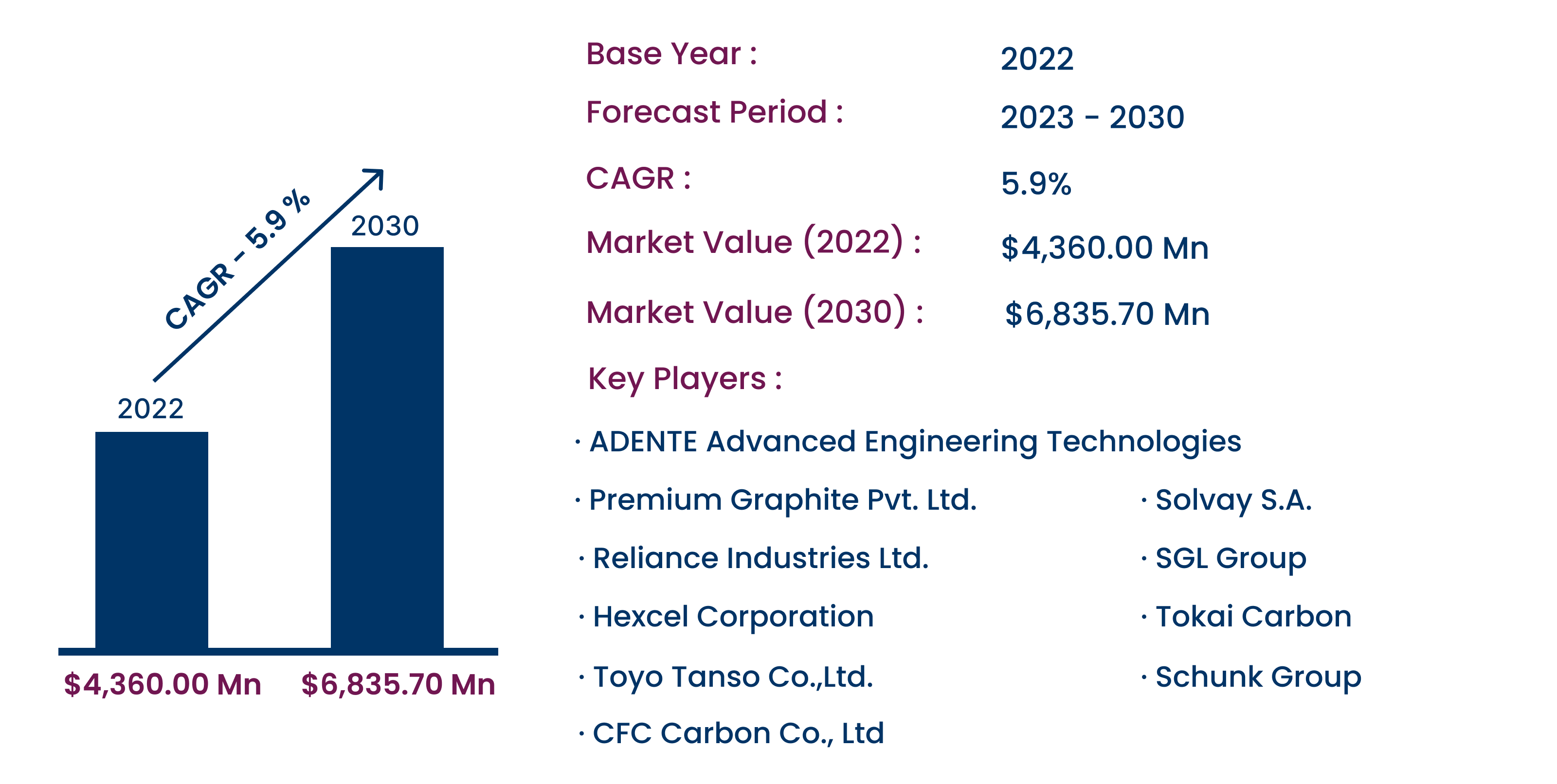 | Key Players | Solvay S.A., SGL Group, CFC Carbon Co., Ltd, Tokai Carbon, Schunk Group, Premium Graphite Pvt. Ltd., Reliance Industries Ltd., Toyo Tanso Co.,Ltd., Hexcel Corporation, and ADENTE Advanced Engineering, and Technologies |