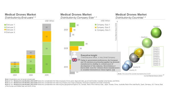 The current market landscape features the presence of over 100 medical drone companies across various geographies. The market is well-fragmented, featuring the presence of established players and start-ups that possess the required expertise to deliver essential medical supplies.
