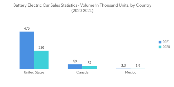 The automotive industry's focus on reducing emissions has accelerated the shift toward electric vehicles. North America has witnessed a surge in demand for battery-electric vehicles, with impressive growth rates. The United States, for instance, saw sales of new light-duty chargeable electric vehicles increase to 608,000 in 2021, up from 308,000 in 2020. Battery electric vehicles accounted for over 73% of total sales. Incentives and mandates are further boosting electric vehicle adoption, with governments encouraging cleaner and more efficient transportation.