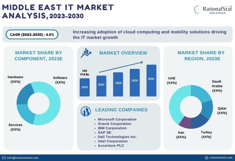 - According to a deep-dive market assessment by RationalStat, the Middle East IT market has been analyzed on the basis of market segments, component, organization size, end user and geography/regions (including GCC, Iran, Iraq, Turkey, Rest of the Middle East). The report also offers global and regional market sizing for the historical period of 2019-2022 and the forecast period of 2023-2030.