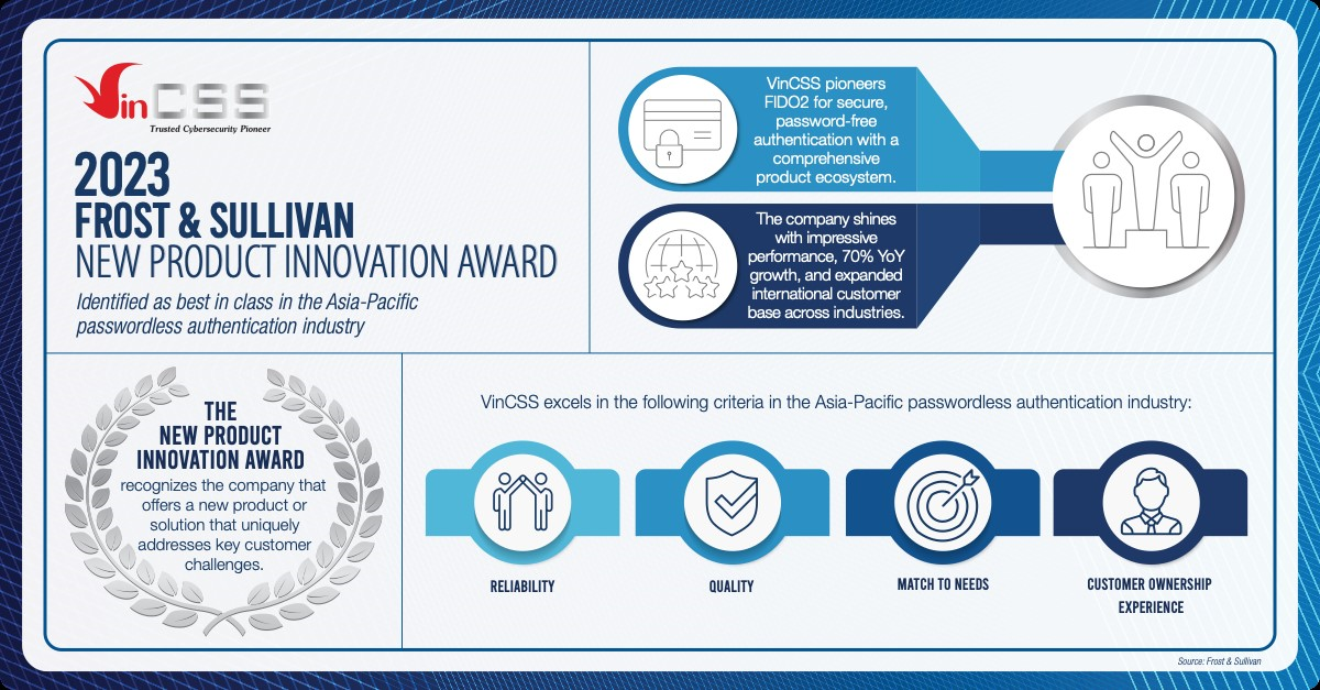Frost & Sullivan 授予 VinCSS 2023 年亚太地区新产品创新奖 (New Product Innovation Award)