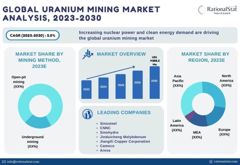 - According to a deep-dive market assessment by RationalStat, the global uranium mining market has been analyzed on the basis of market segments, including type, application and geography/regions (including North America, Latin America, Western Europe, Eastern Europe, Middle East & Africa, and Asia Pacific). The report also offers global and regional market sizing for the historical period of 2019-2022 and the forecast period of 2023-2030.