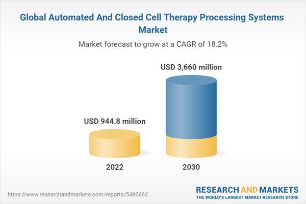 Dublin, Nov. 01, 2023 (GLOBE NEWSWIRE) -- The "Global Automated and Closed Cell Therapy Processing Systems Market 2023-2030" report has been added to ResearchAndMarkets.com's offering.