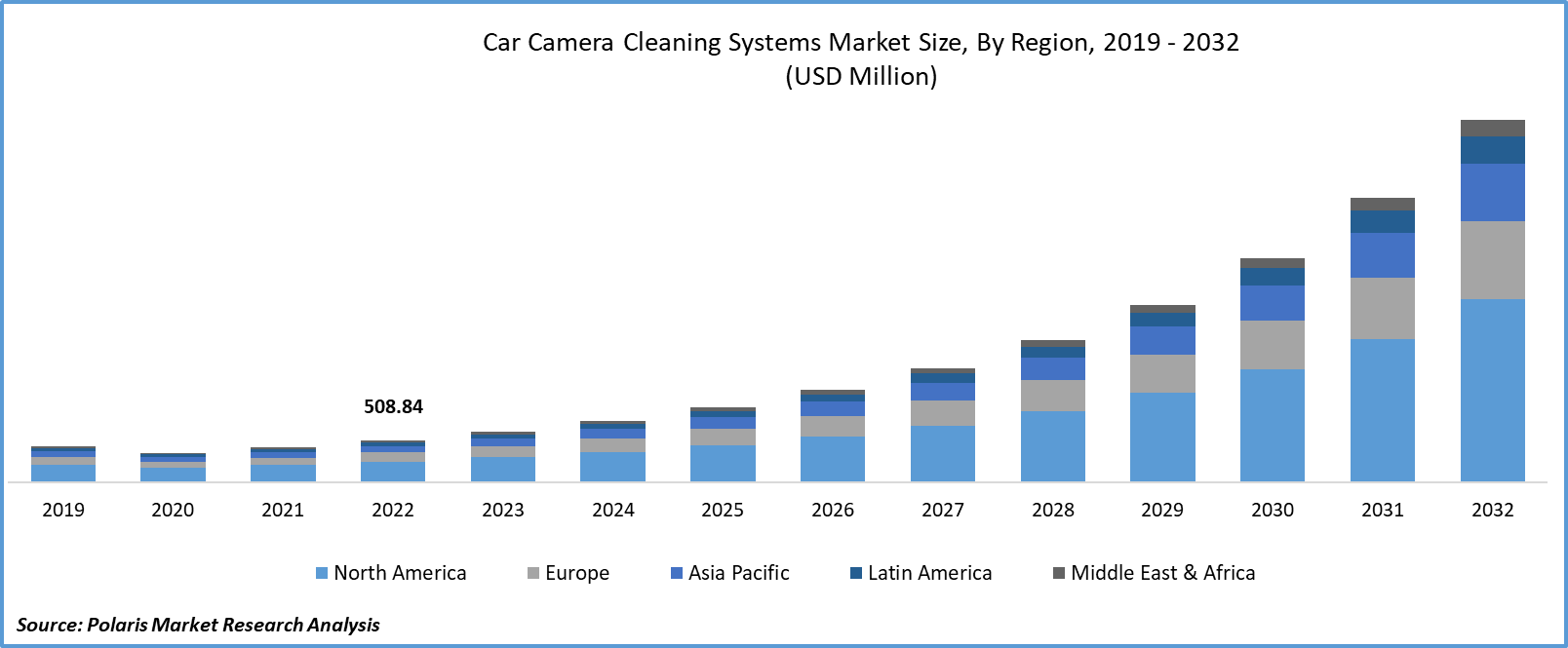 According to [115+ Pages] research report by Polaris Market Research, the global car camera cleaning systems market size & share is currently valued at USD 508.84 million in 2022 and is anticipated to generate an estimated revenue of USD 4,401.80 million by 2032, according to the latest study by Polaris Market Research. Besides, the report notes that the market exhibits a robust 24.5% Compound Annual Growth Rate (CAGR) over the forecasted timeframe, 2023-2032.