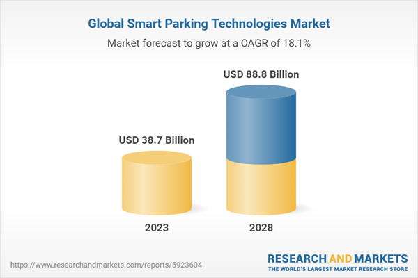 The global market for smart parking technologies was valued at $35.6 billion in 2022 and is expected to reach $88.8 billion by the end of 2028. The market is projected to grow at a compound annual growth rate (CAGR) of 18.1% during the forecast period of 2023 to 2028.