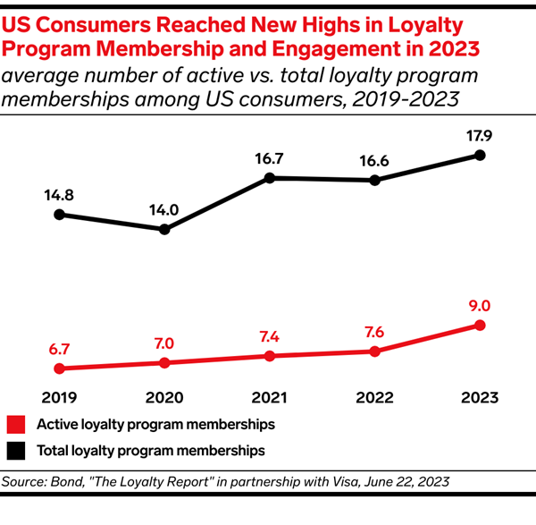 Key Stat: US consumers held an average of 17.9 loyalty program memberships in 2023, a record high, and actively participated in 50% of them.