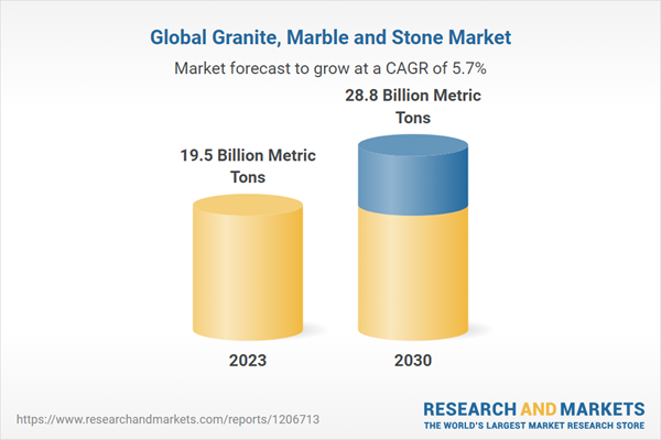 The global market for Granite, Marble and Stone is estimated at 19.5 Billion Metric Tons in 2023 and is projected to reach 28.8 Billion Metric Tons by 2030, growing at a CAGR of 5.7% from 2023 to 2030. This comprehensive report provides an in-depth analysis of market trends, drivers, and forecasts, helping you make informed business decisions.