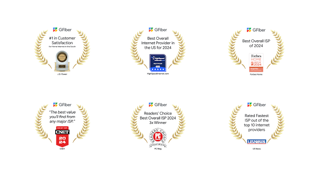 This dedication to improvement using verified data and feedback has led to several accolades and awards for GFiber over the last couple of years, including being been recognized by JD Power as the South’s internet service provider with the highest customer satisfaction, CNET as the best value from a major ISP and PC Mag’s Most Decorated internet provider including the 2024 PCMag Readers Choice Award.