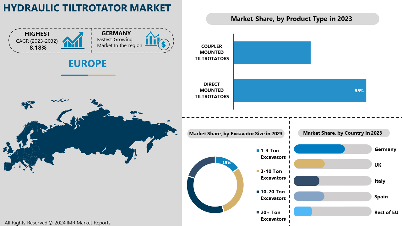 The hydraulic tiltrotator market is driven by demand for precision in excavation, infrastructure projects, and utility work. Key players focus on innovation, improving efficiency, and reducing labor costs. Growth is fueled by urbanization, automation trends, and rising construction activities, with Europe and North America leading in adoption and technological advancements.