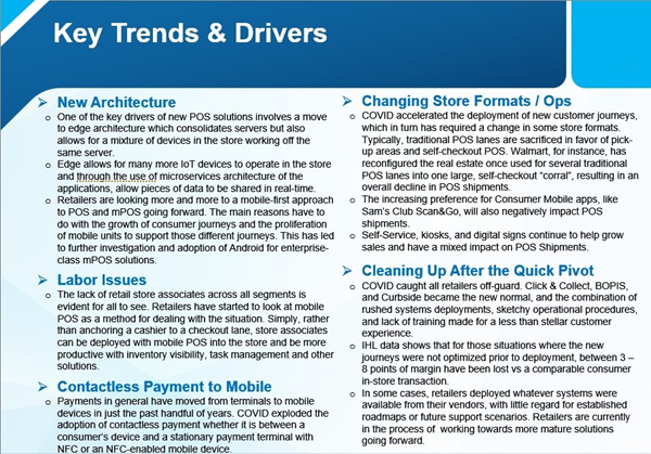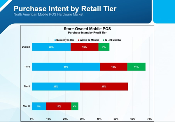 Going forward, we expect the story to change a bit, as Tier I retailers have begun to embrace mPOS in a much bigger way with new customer journeys. This phase started with COVID, however, even the largest retailers are considering doing mobile first design for the POS so they only have one app regardless of the client. This is also leading many retailers to consider using mobile POS devices that can be fixed or mobile to be used in their stores.