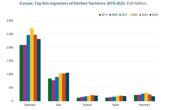 Most European kitchen furniture exports are destined within Europe, with the remainder going overseas, mainly to North America, Asia-Pacific, and the Middle East.
