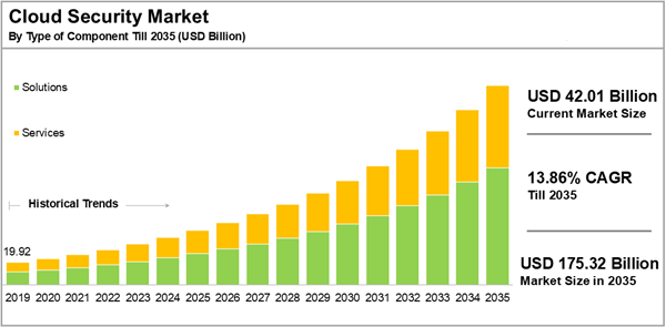 The global cloud security market size is estimated to grow from USD 42.01 billion in the current year to USD 175.32 billion by 2035, at a CAGR of 13.86% during the forecast period, till 2035