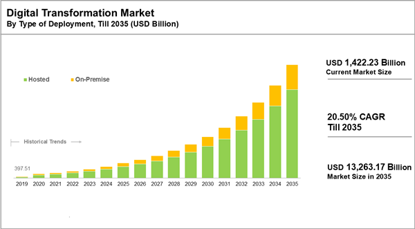 Dublin, June 17, 2025 (GLOBE NEWSWIRE) -- The "Digital Transformation Market Industry Trend and Future Forecast to 2035: Distribution by Type of Technology, Type of Offering, Type of Deployment, Type of Application, Company Size, Business Model, End User and Geographical Region" report has been added to ResearchAndMarkets.com's offering.