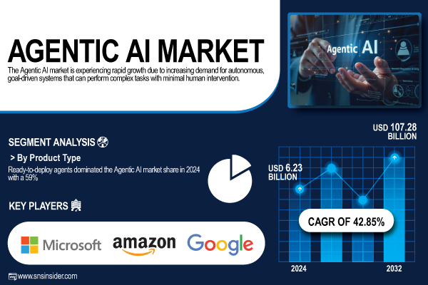Austin, Aug. 25, 2025 (GLOBE NEWSWIRE) -- The Agentic AI Market was valued at approximately USD 6.23 billion in 2024 and is projected to surge to USD 107.28 billion by 2032, reflecting a robust CAGR of 42.85% between 2025 and 2032.