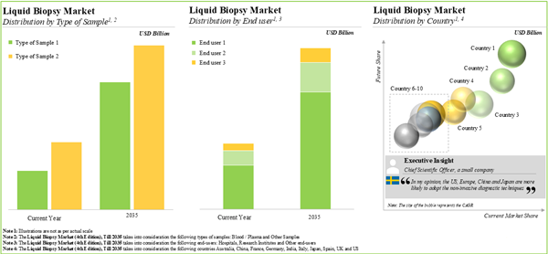 - Market Sizing and Opportunity Analysis: The report features an in-depth analysis of the liquid biopsy market, focusing on key market segments, including application, target disease indication, type of circulating biomarker, type of sample, end-user, stage of development, type of product, type of technique, application area and key geographical regions.
