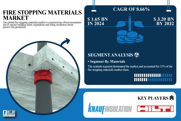 According to the SNS Insider,“The Fire Stopping Materials Market size was valued at USD 1.65 billion in 2024 and is expected to reach USD 3.20 billion by 2032, growing at a CAGR of 8.66% over the forecast period of 2025-2032.”