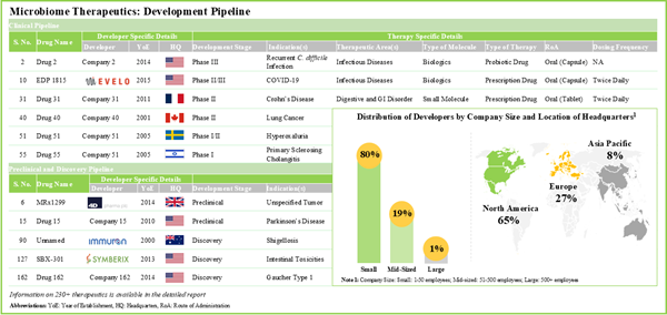 - Presently, over 70 companies, worldwide, have taken initiatives to develop therapies that can manipulate the human microbiome; the market is characterized by the presence of small companies.