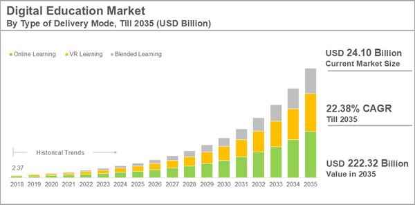 Dublin, Oct. 08, 2025 (GLOBE NEWSWIRE) -- The "Digital Education Market Industry Trends and Global Forecasts to 2035: Distribution by Type of Delivery Mode, Type of Device, Type of Certification, Type of Learning, Type of Course, Mode of Application, End User, Company Size, Type of Business Model and Key Geographical Regions" report has been added to ResearchAndMarkets.com's offering.