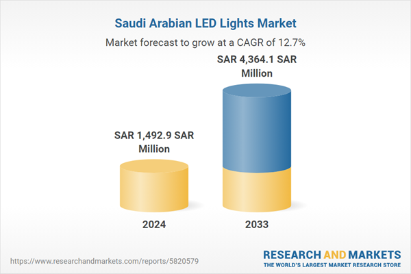 The Saudi Arabia LED lights market size reached SAR 1.49 billion in 2024. Looking forward, the market is set to reach SAR 4.36 billion by 2033, exhibiting a growth rate (CAGR) of 12.03% during 2025-2033. The need for energy conservation, infrastructure development projects, and a shift towards smart and connected lighting systems, coupled with government support for the adoption of LED lights, are among the key factors driving the market growth.