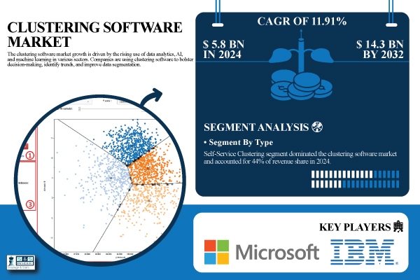 Austin, Nov. 21, 2025 (GLOBE NEWSWIRE) -- The Clustering Software Market size was valued at USD 5.8 billion in 2024 and is expected to reach USD 14.3 billion by 2032, growing at a CAGR of 11.91% during 2025-2032.