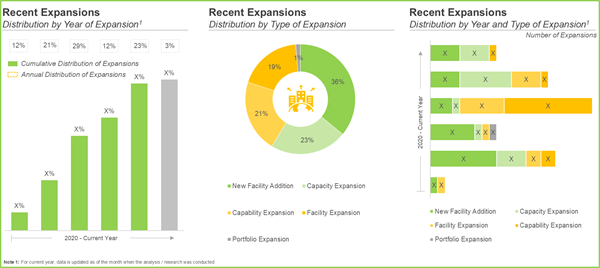 - Majority of the recent expansions (~40%) were undertaken in facilities located in Asia-Pacific; notably, India and Singapore emerged as the key regions where most of the expansions were undertaken.