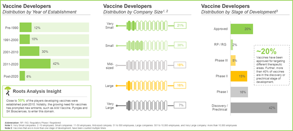 - The current market landscape is highly fragmented, featuring the presence of both new entrants and established players; of these, close to 25% of the vaccine developers are large and very large players.