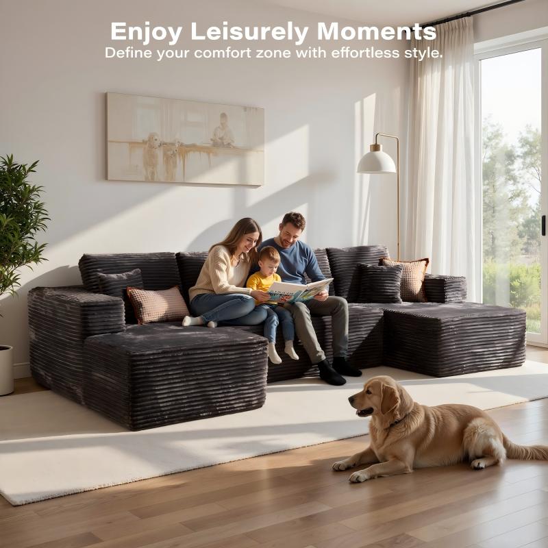 The OVIOS U-Shaped Sectional Sofa is designed for the moments that define home life—relaxing evenings, family gatherings, and quiet breaks in between. With its 131.5-inch frame and dual chaise layout, it transforms living spaces into open, inviting environments that encourage comfort and connection.